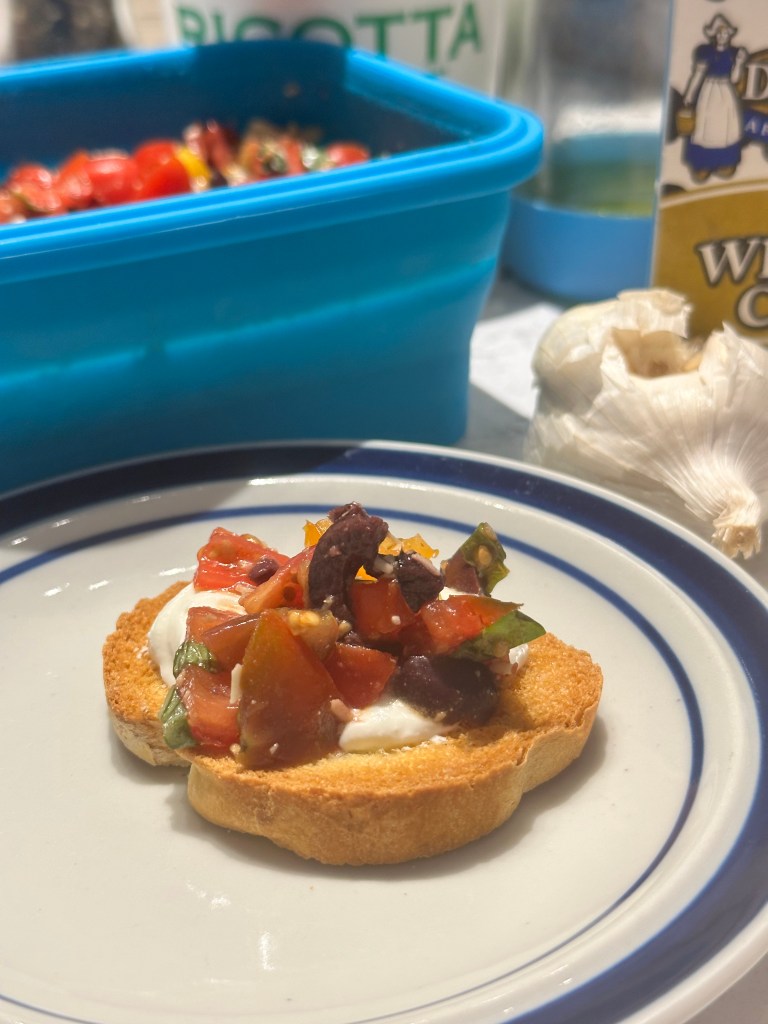 Serve this on toasted bread, layering the ricotta directly on the bread and topping with the bruschetta.